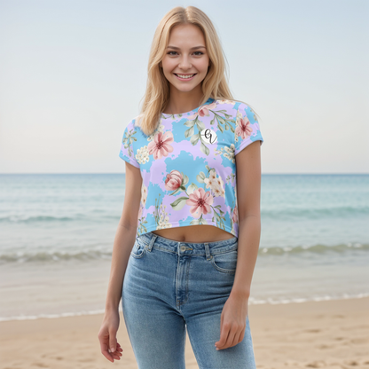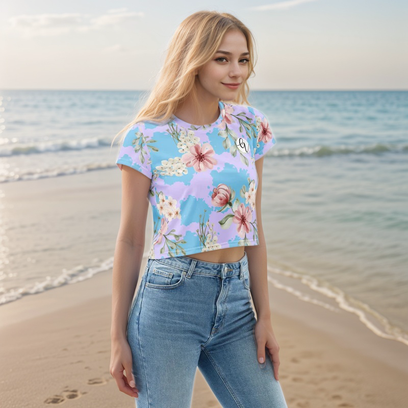 Looking for you next wardrobe favorite? Well, look no further because this crop tee is printed and sewn to fit you just right. To top that off, the original all-over design is definitely worth showing off, so don't hesitate to own one of these tees - they're meant to be adored.