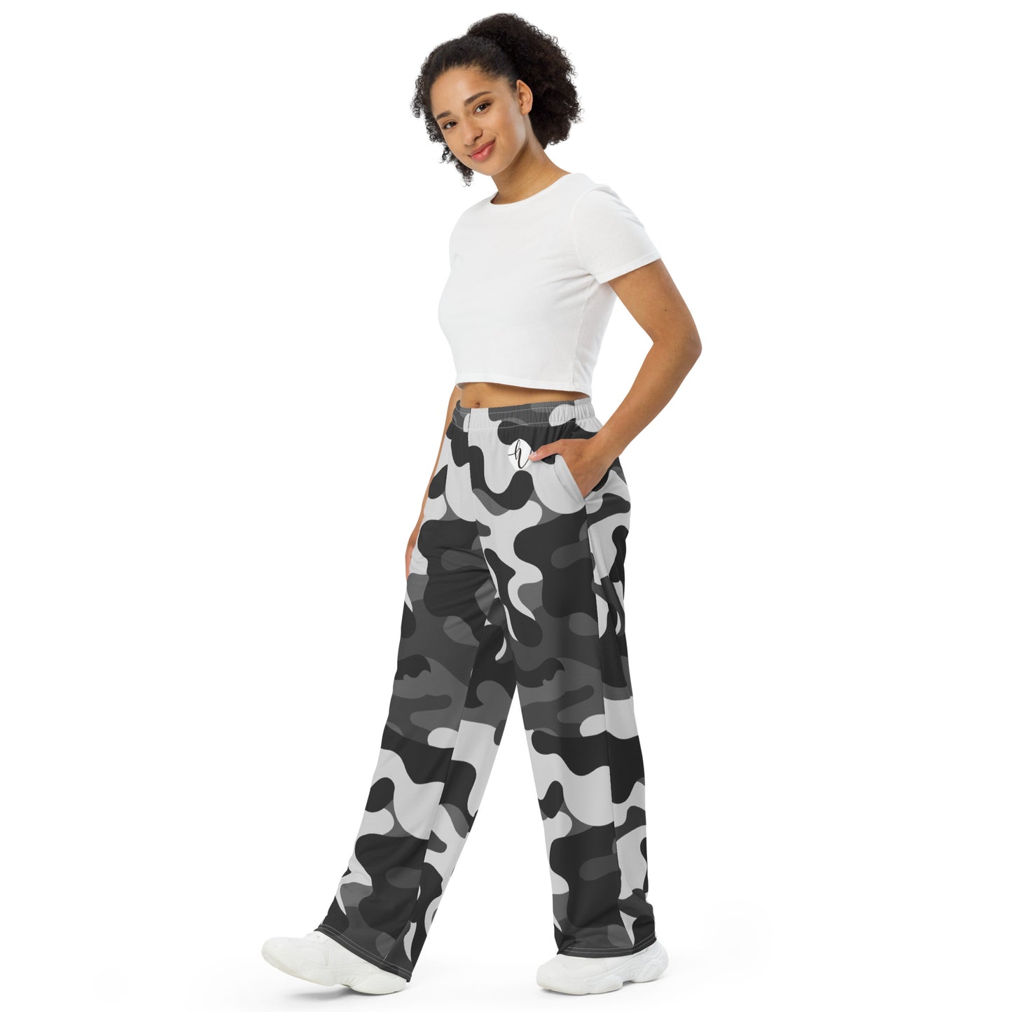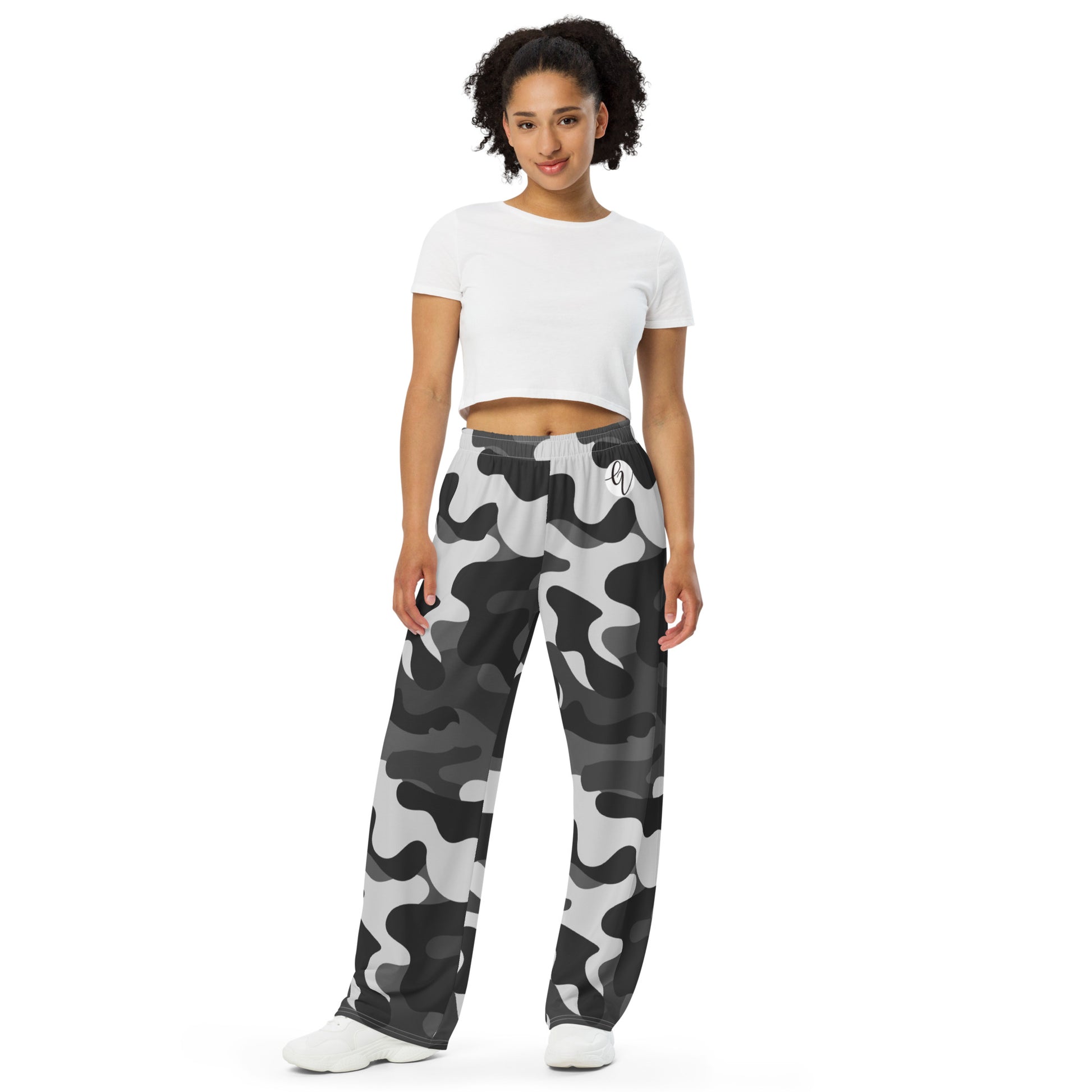 Grey Black Army Wide Leg Pants