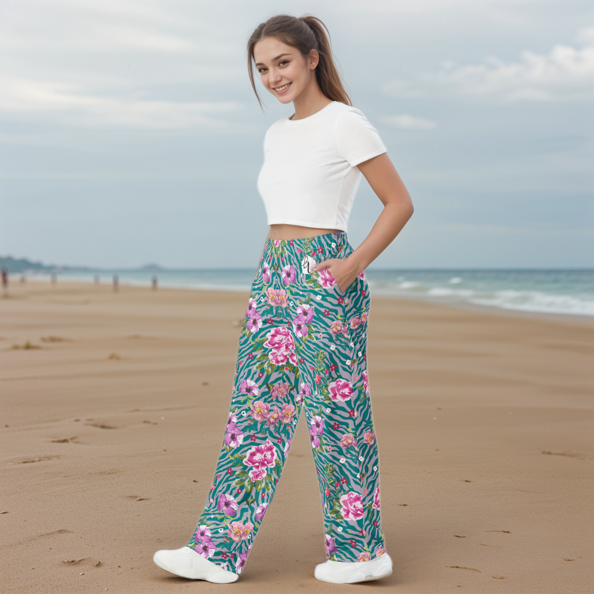 Get the comfort of pajamas in this stylish pair of wide-leg pants. With the adjustable waist and stretchy fabric, it’s like your favorite sweatpants but better.