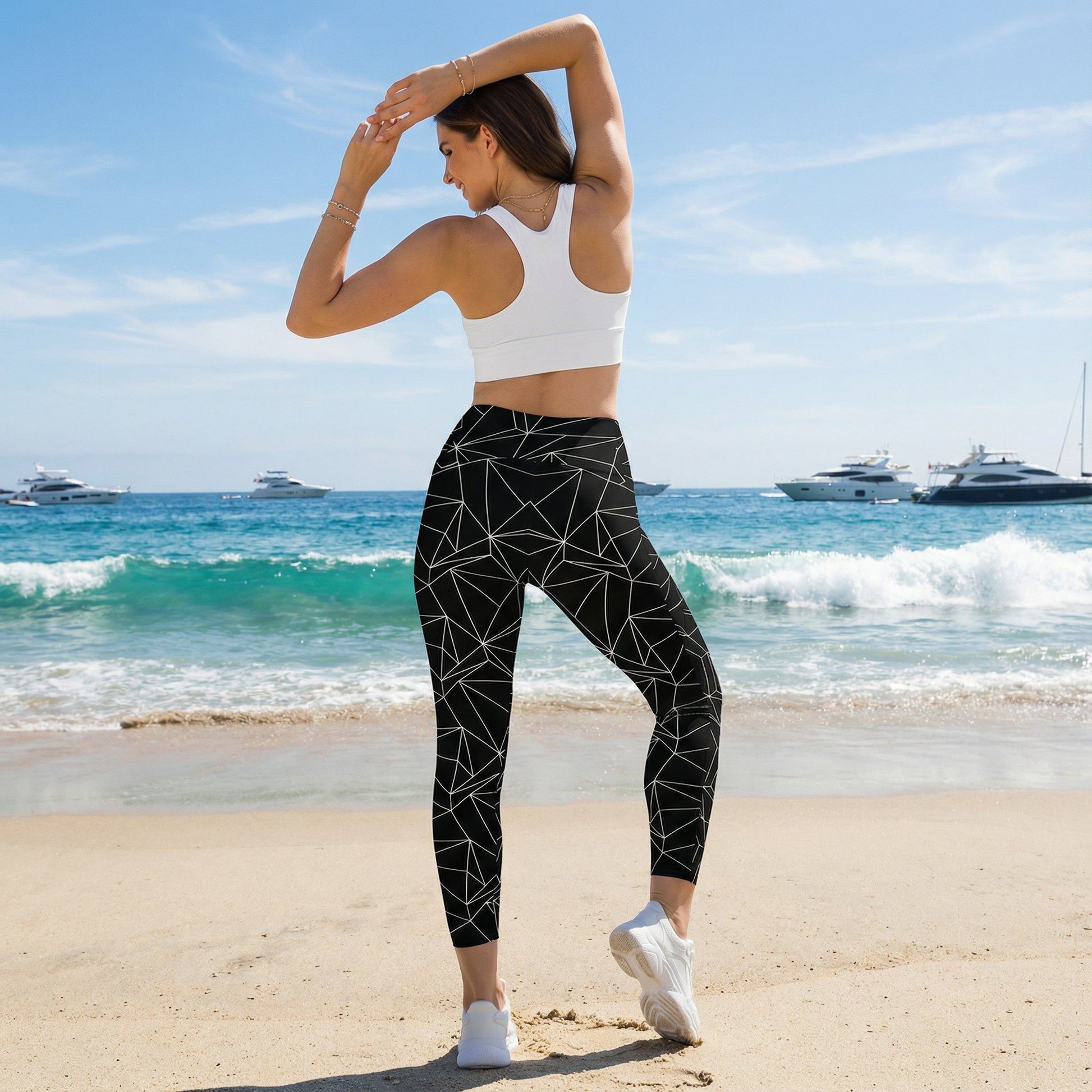 Black And White Abstract Crossover Leggings With Pockets