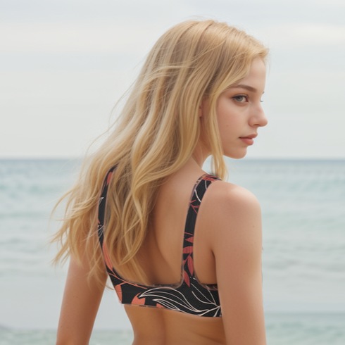 Get this Recycled padded bikini top for your summer adventures! It’s comfortable and includes pads you can remove. To make this top even more versatile, mix and match it with different bikini bottoms for a trendy look.
