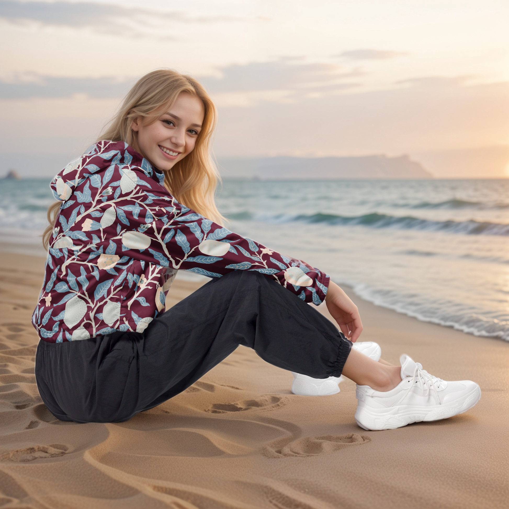 Hike in style without the rain getting in the way—this cropped windbreaker is lightweight, waterproof, and suitable for every kind of adventure. Features include side-slit pockets, breathable mesh lining, and adjustable drawcords on the hood and waist to support all your stylish outdoor looks.