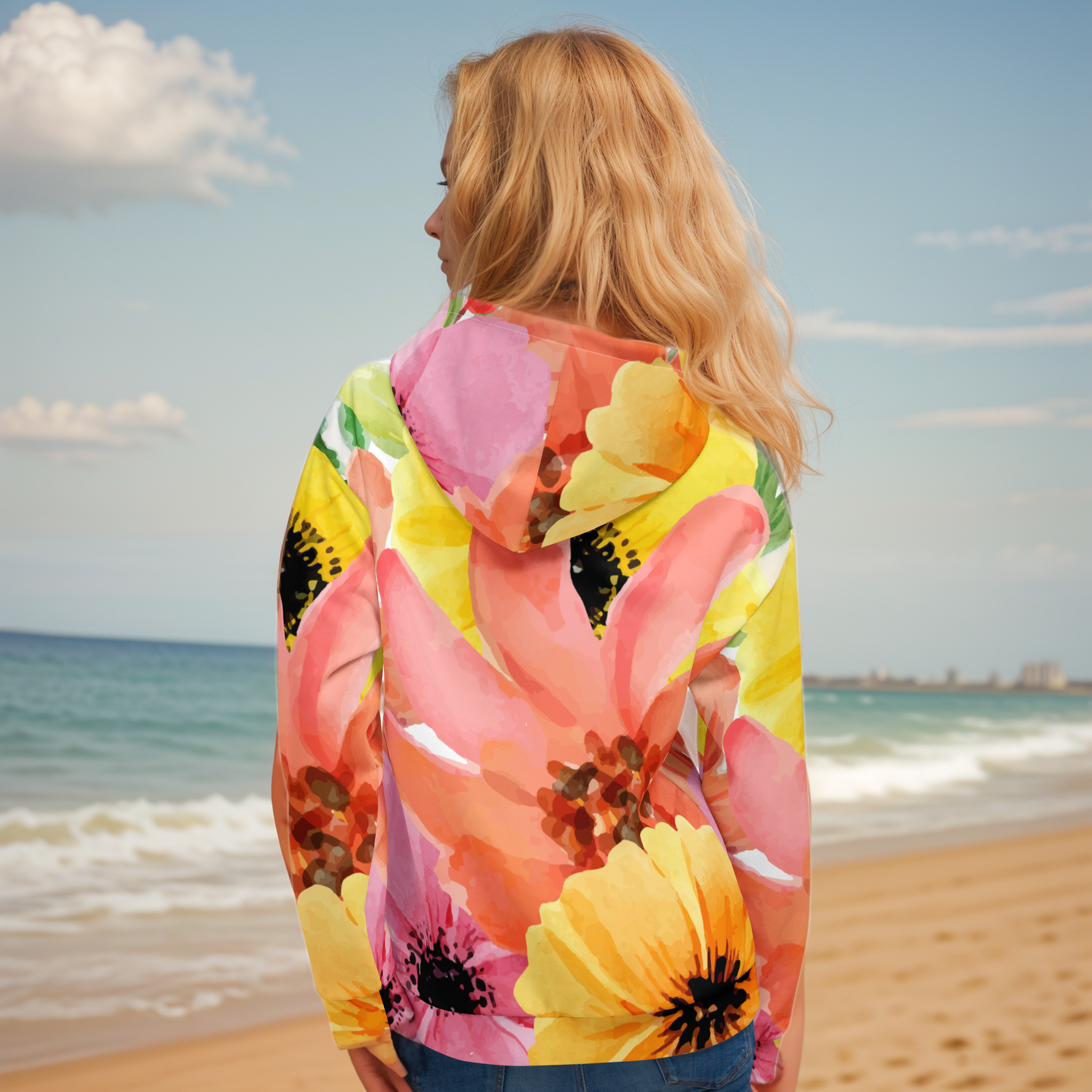 This comfy unisex hoodie has a soft outside with a vibrant print and an even softer brushed fleece inside. The hoodie has a relaxed fit, and it’s perfect for wrapping yourself into on a chilly evening.