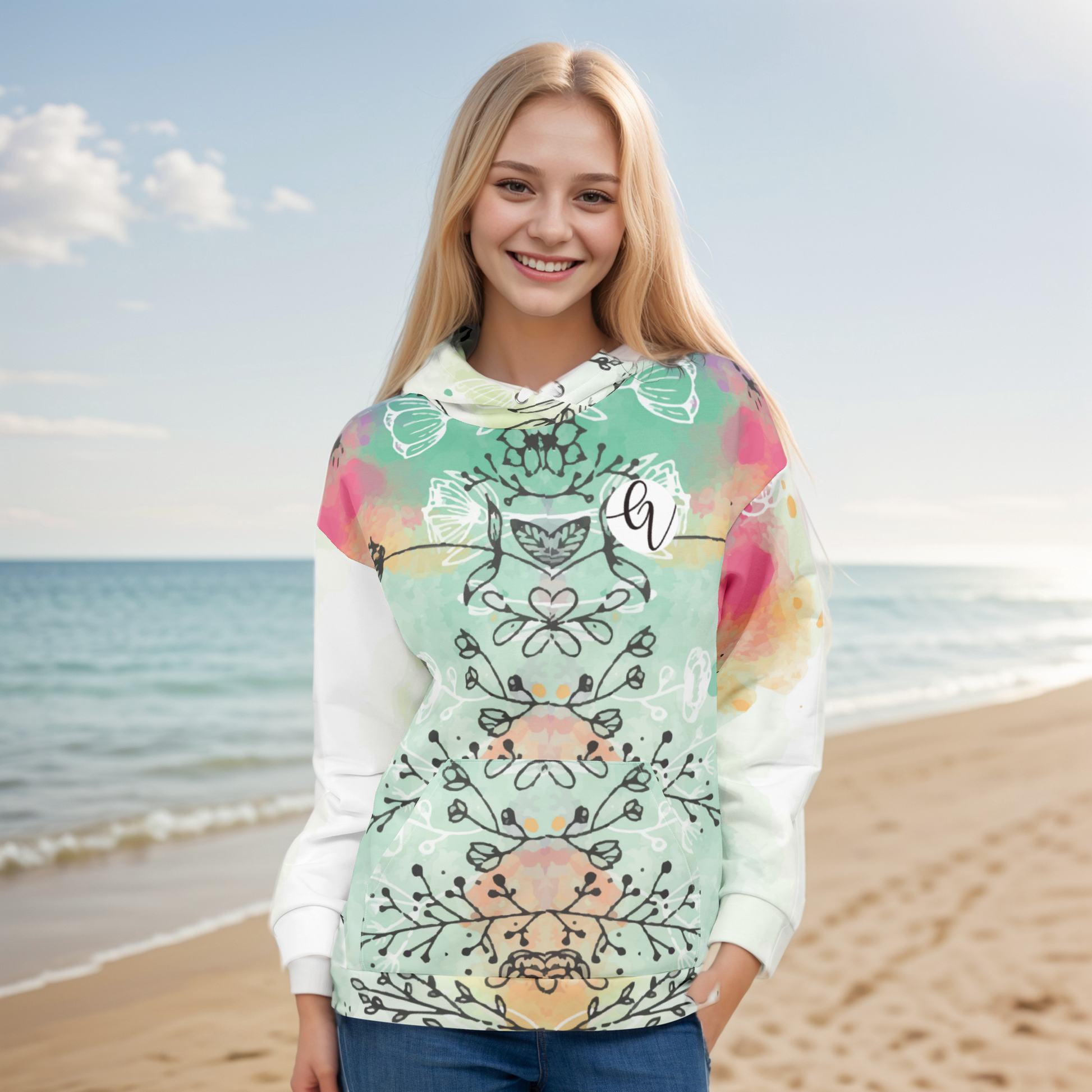 This comfy unisex hoodie has a soft outside with a vibrant print and an even softer brushed fleece inside. The hoodie has a relaxed fit, and it's perfect for wrapping yourself into on a chilly evening.
