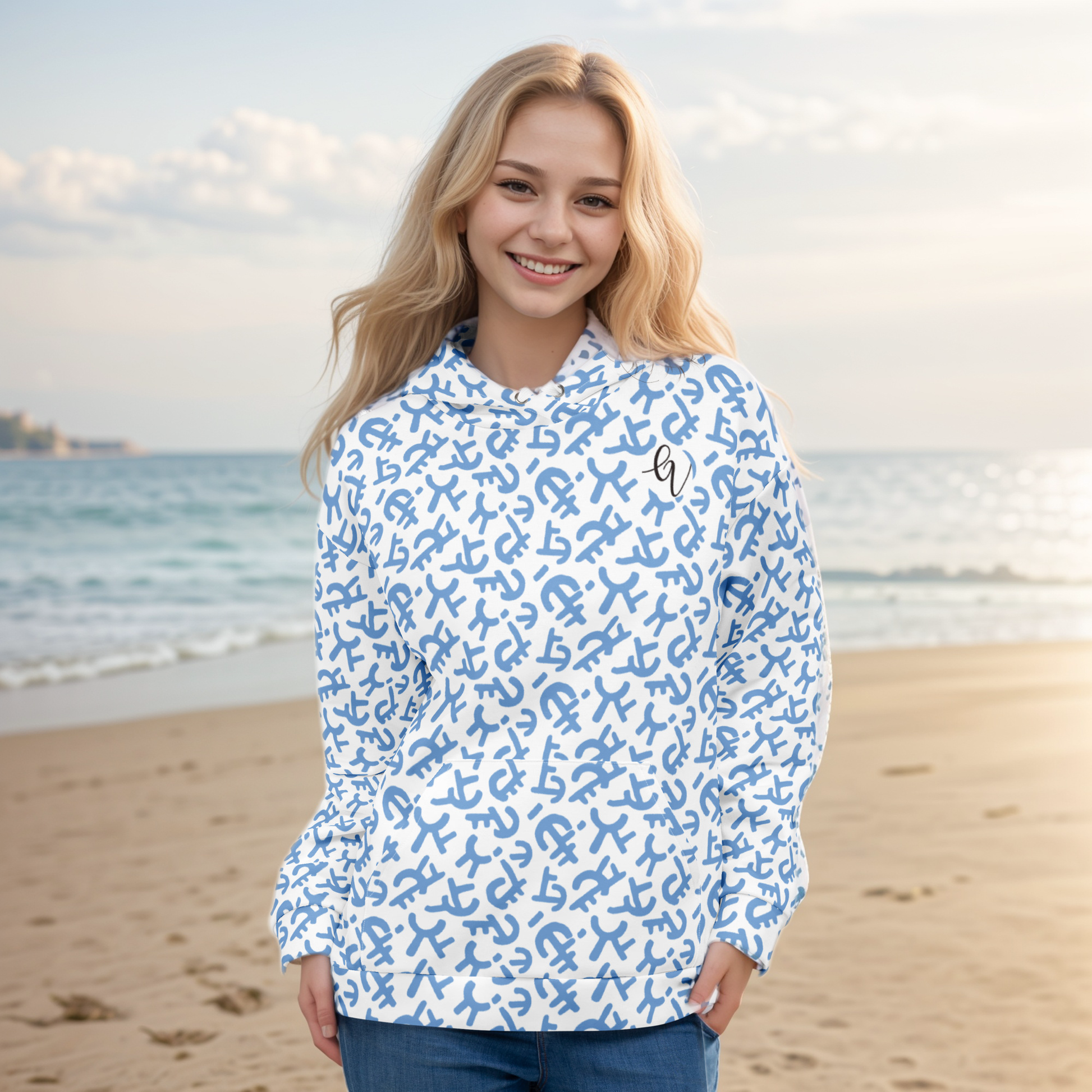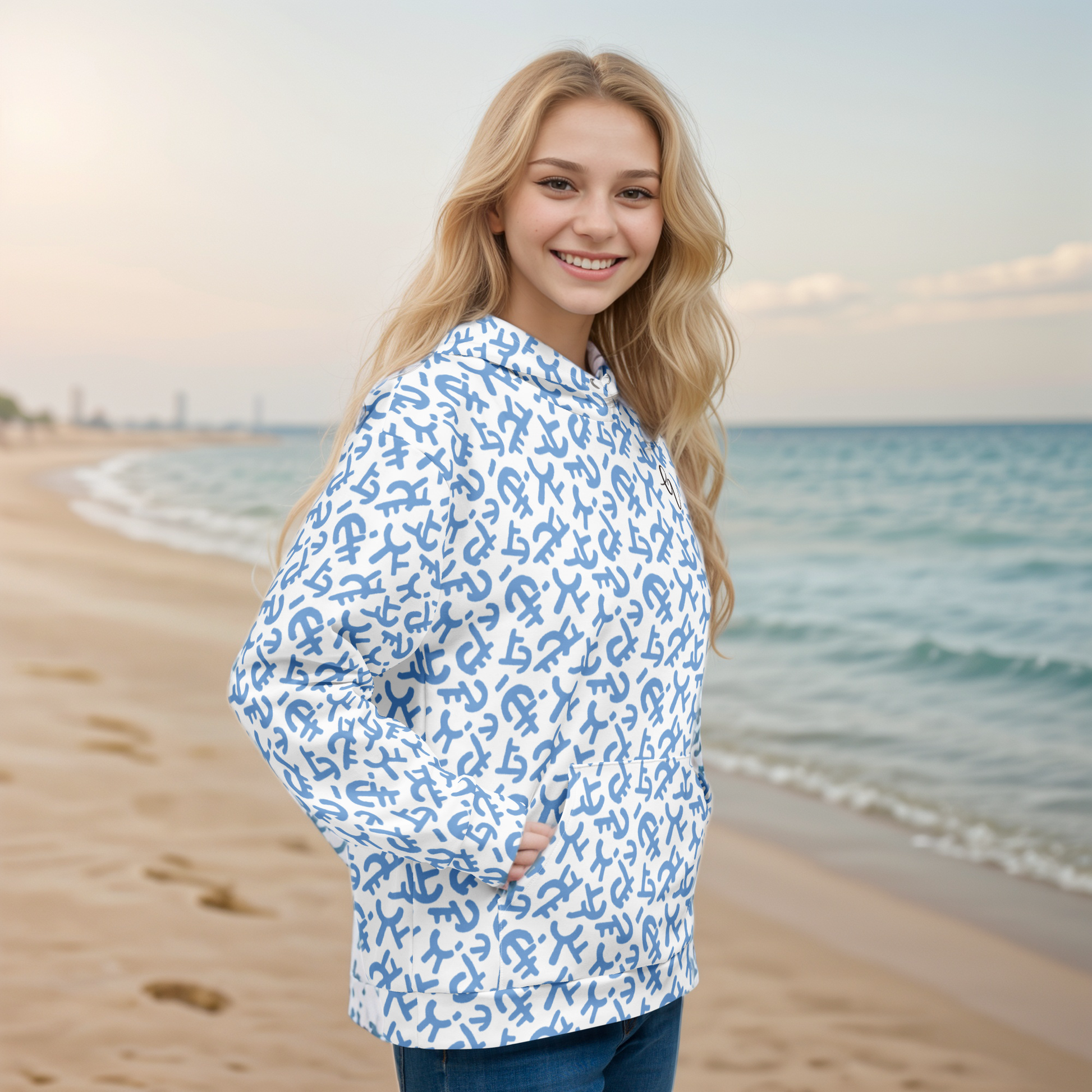 • Double-lined hood with design on both sides