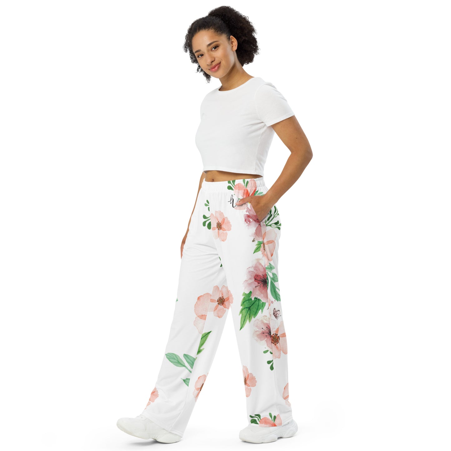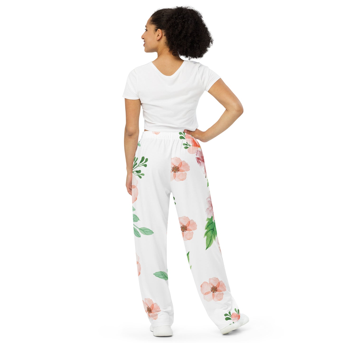 - Elastic waistband with a white drawstring
