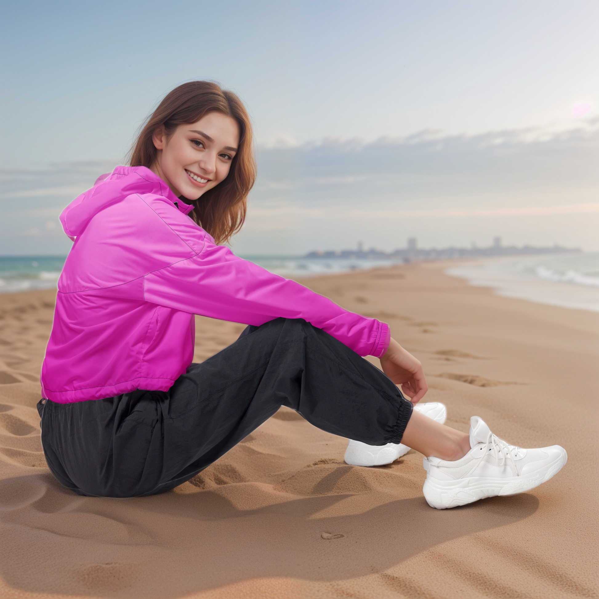 Hike in style without the rain getting in the way—this cropped windbreaker is lightweight, waterproof, and suitable for every kind of adventure. Features include side-slit pockets, breathable mesh lining, and adjustable drawcords on the hood and waist to support all your stylish outdoor looks.