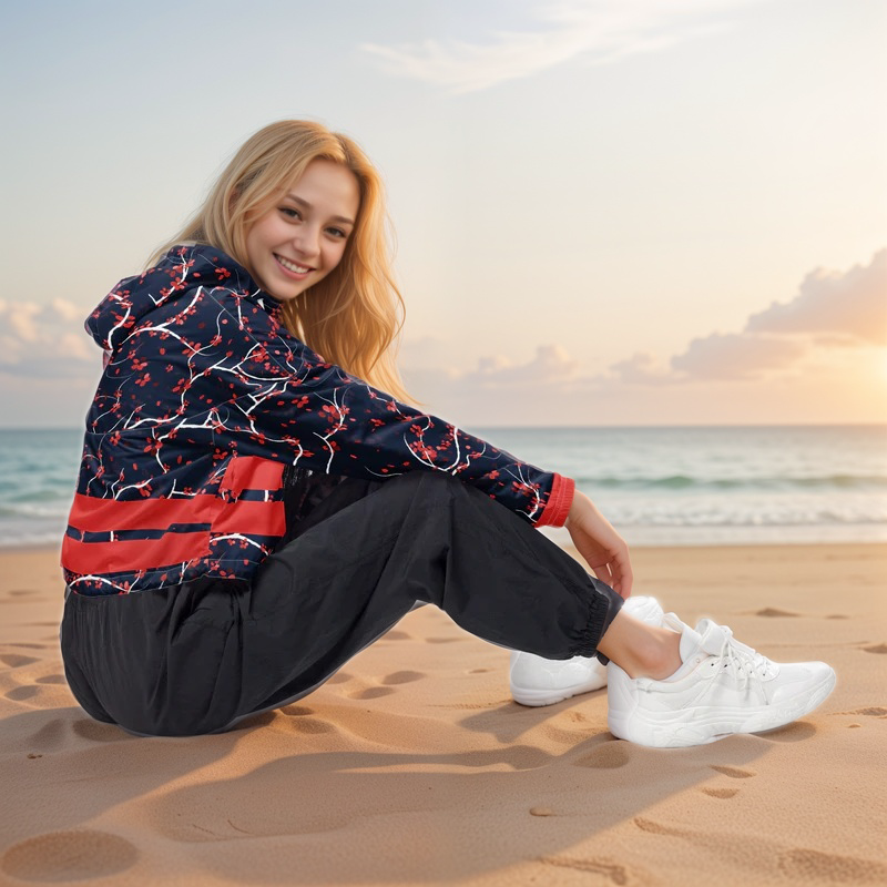 Hike in style without the rain getting in the way—this cropped windbreaker is lightweight, waterproof, and suitable for every kind of adventure. Features include side-slit pockets, breathable mesh lining, and adjustable drawcords on the hood and waist to support all your stylish outdoor looks.